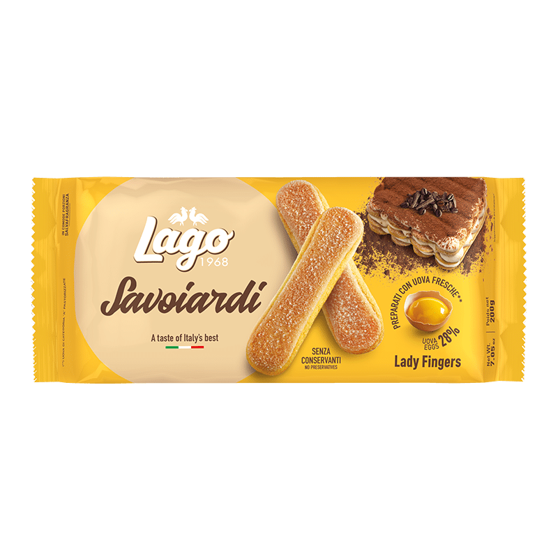 Les boudoirs LAGO sont des biscuits secs, aérés et légèrement sucrés, appréciés pour leur texture fine et leur grande polyvalence. Ils sont idéaux à déguster seuls ou à utiliser dans de nombreuses recettes pâtissières comme le tiramisu, les charlottes ou les desserts à base de crème.