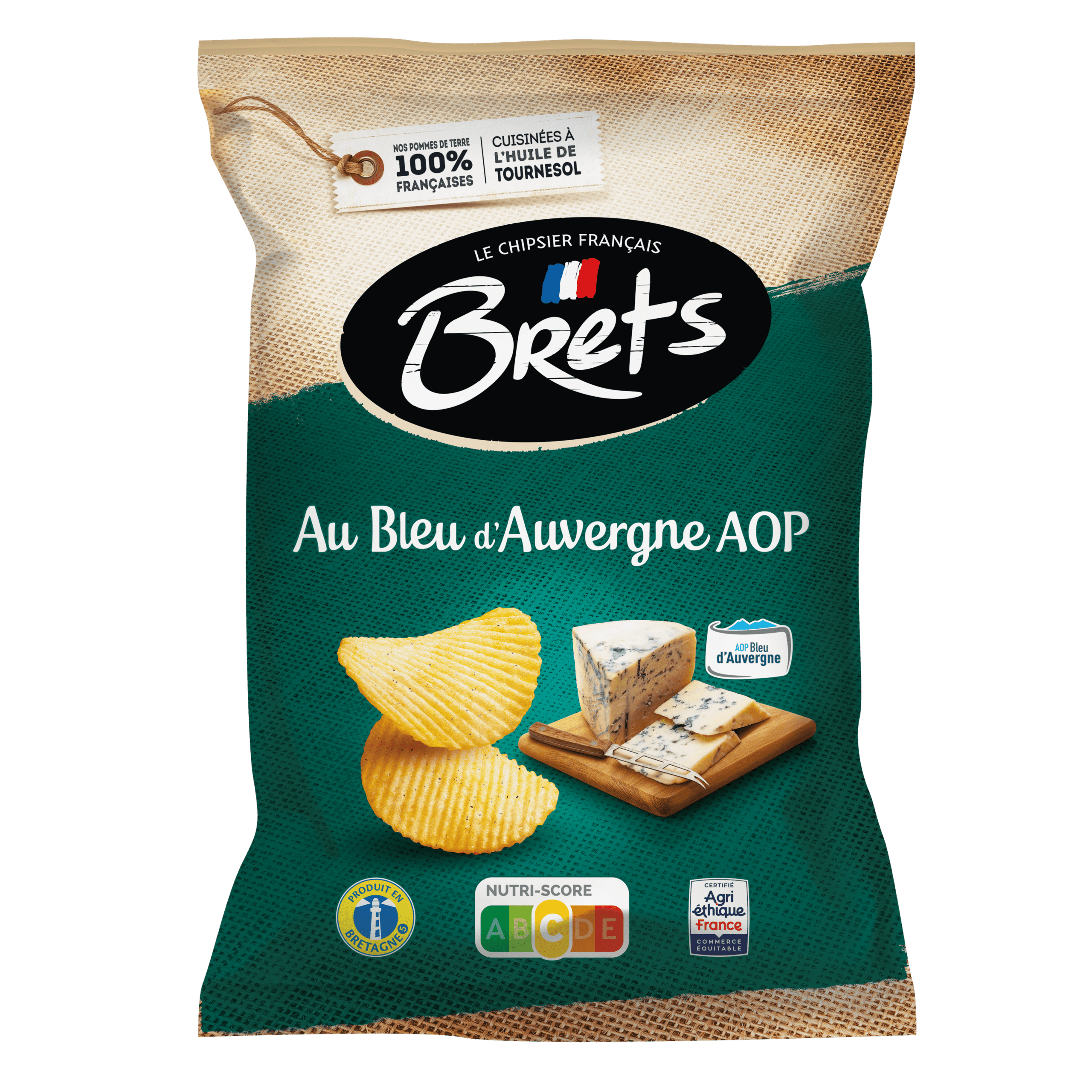 Les chips BRET’S Bleu d’Auvergne rendent hommage à la richesse du patrimoine fromager français. Leur saveur marquée, typique du fromage à pâte persillée, se marie parfaitement à la texture ondulée et croustillante des chips, pour un apéritif original et plein de goût.