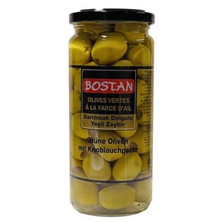 Accueil » Boutique » Condiments » Saumures - Olives - Huiles » Olives farcies à l’ail 500cc BOSTAN