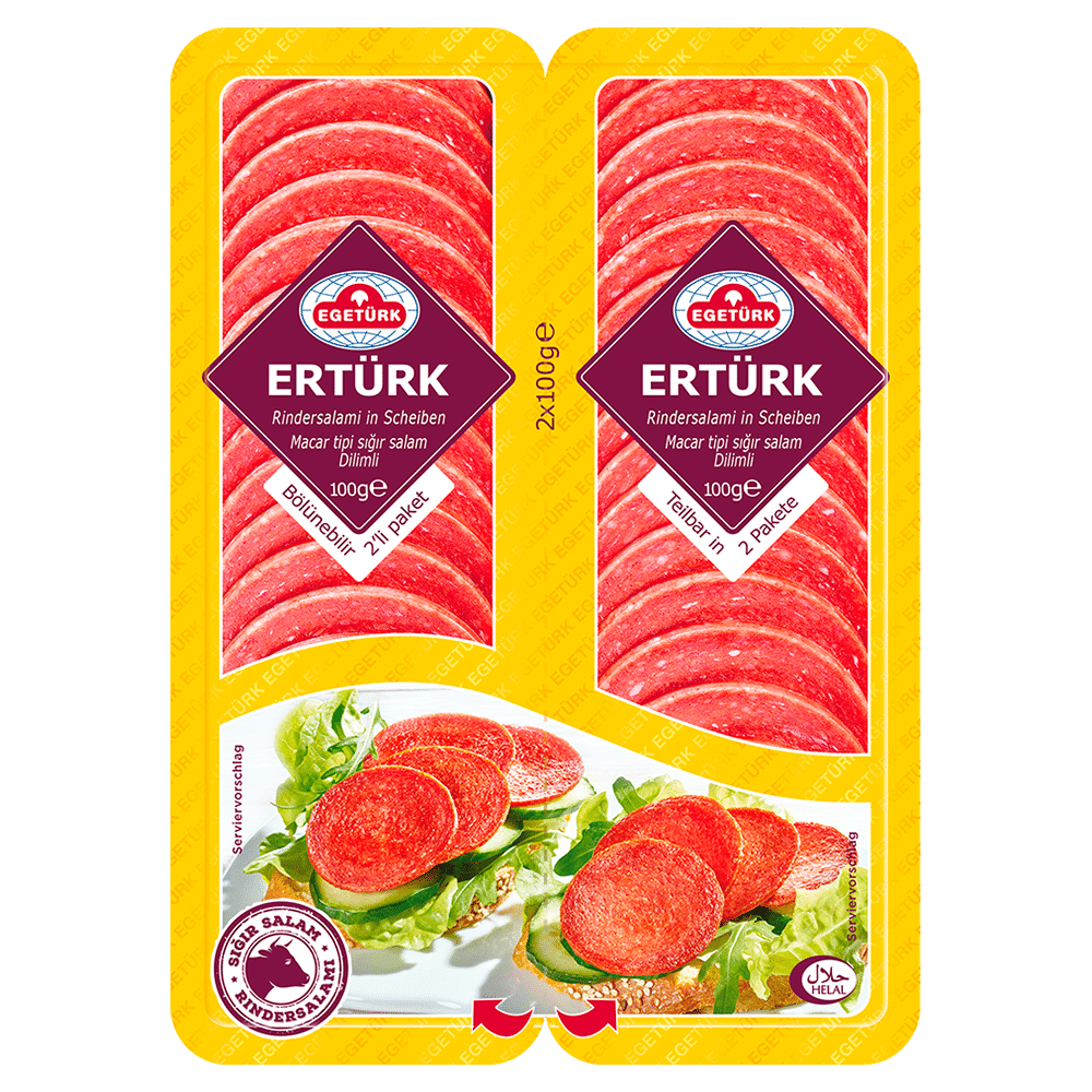 Offrez-vous un moment de pur plaisir charcutier avec les tranches de bœuf type hongrois signées ERTURK EGETURK, une marque de référence dans la charcuterie halal. Préparées à partir de viande de bœuf de qualité, ces tranches sont finement coupées, légèrement fumées et subtilement épicées pour rappeler les traditions hongroises.